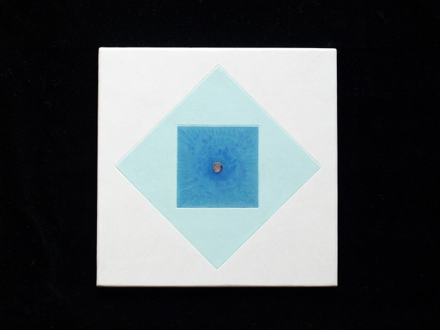 Mehr Blaues Kraefteviereck Schmuckstück aus Holz zum Aufhängen, poliment weiß und mintgrün poliert, handgraviert … Mehr