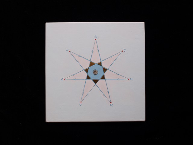 Mehr Kosmisches Kräfteviereck Schmuckstück aus Holz zum Anlehnen oder Aufhängen, polimentvergoldet, poliment weiß und … Mehr