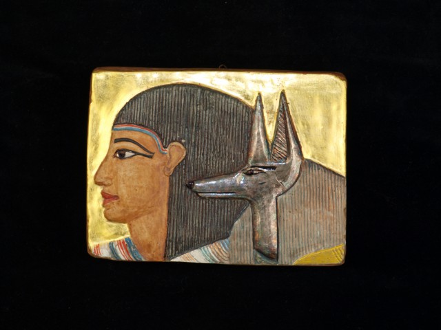 Mehr Schakalköpfiger Totengott Anubis Relief aus Alabastergips, zum Anlehnen oder Aufhängen, polimentvergoldet, blattversilbert … Mehr