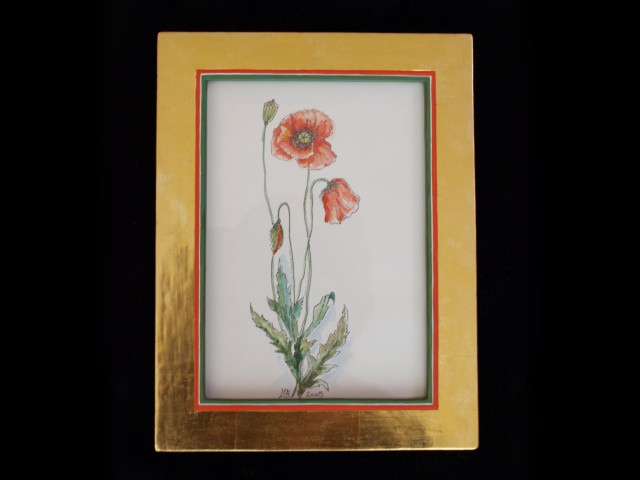 Mehr Mohnblüten Bild mit Goldrahmen zum Aufhängen, handgraviert mit Tempera-Färbelung, Zeichnung … Mehr