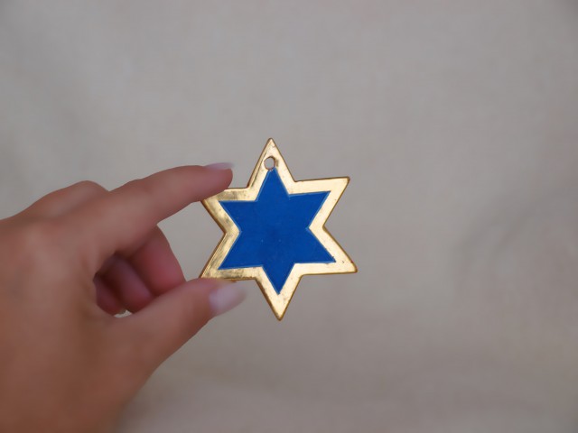 Mehr Sternchen (sechszackig, hellblau) Sternchen mit Lochung in einer Zacke, zum Aufhängen, aus Holz, polimentvergoldet … Mehr